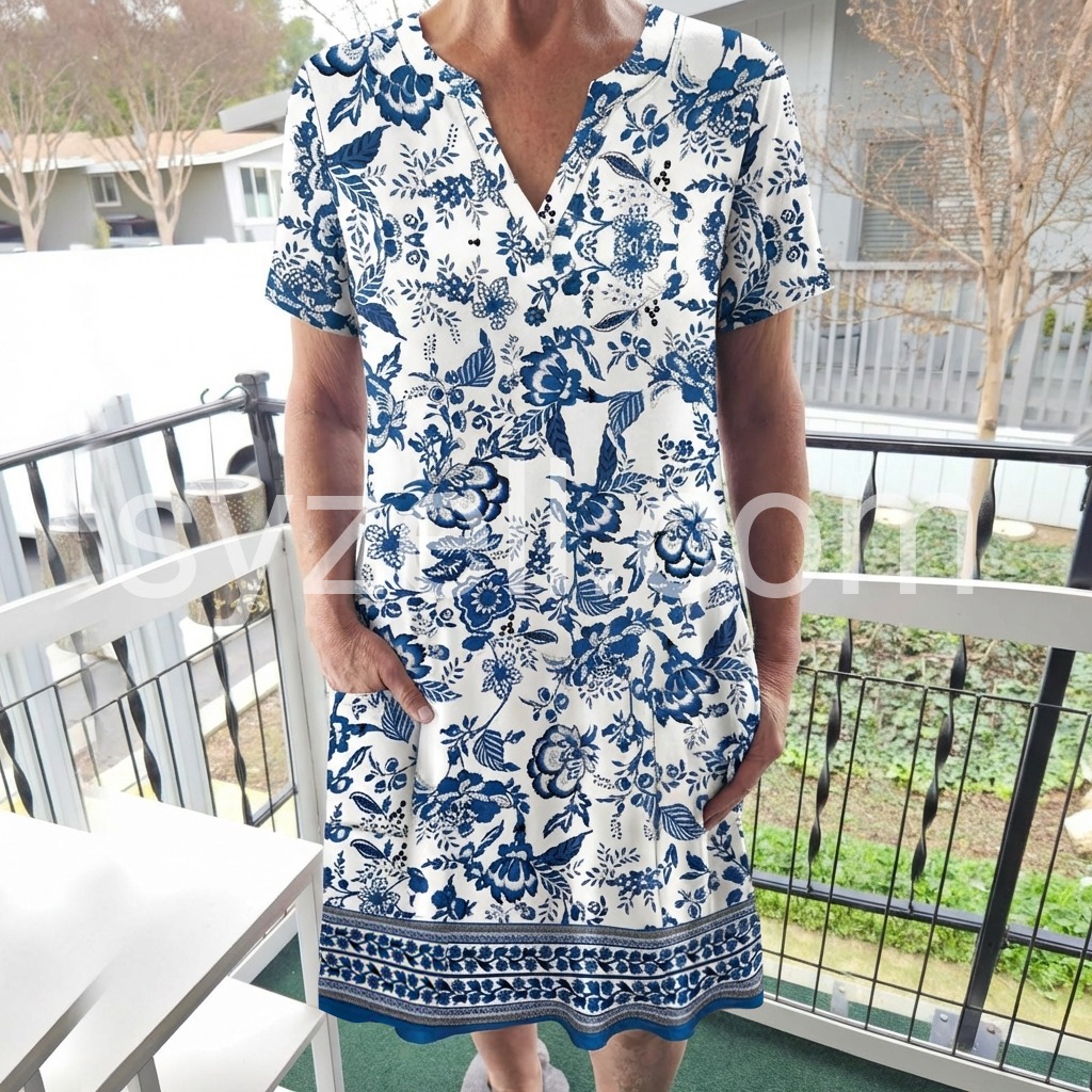 This dress draws inspiration from classic blue-and-white porcelain, blending timeless elegance with modern comfort.