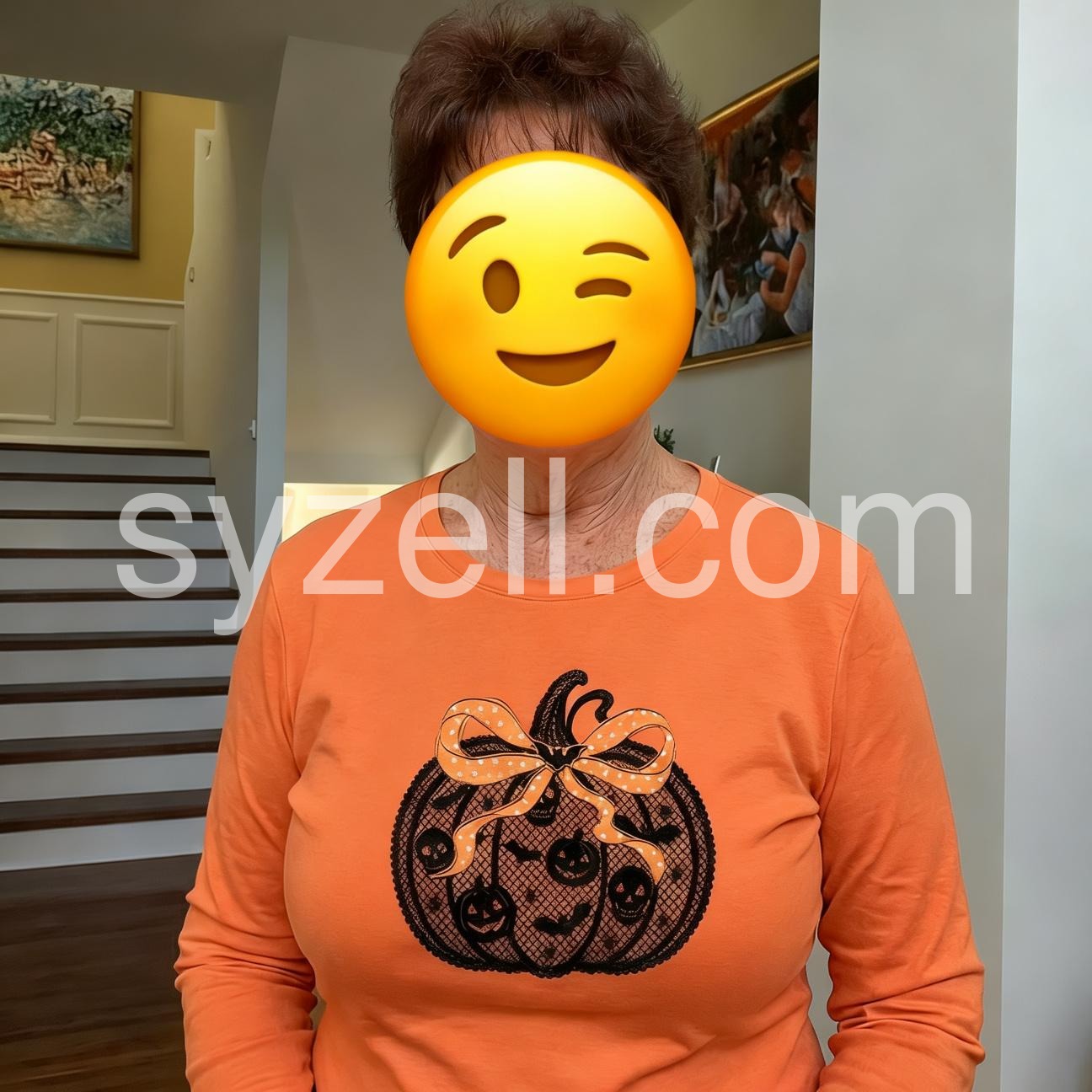 Orange Round Neck Long Sleeve Top