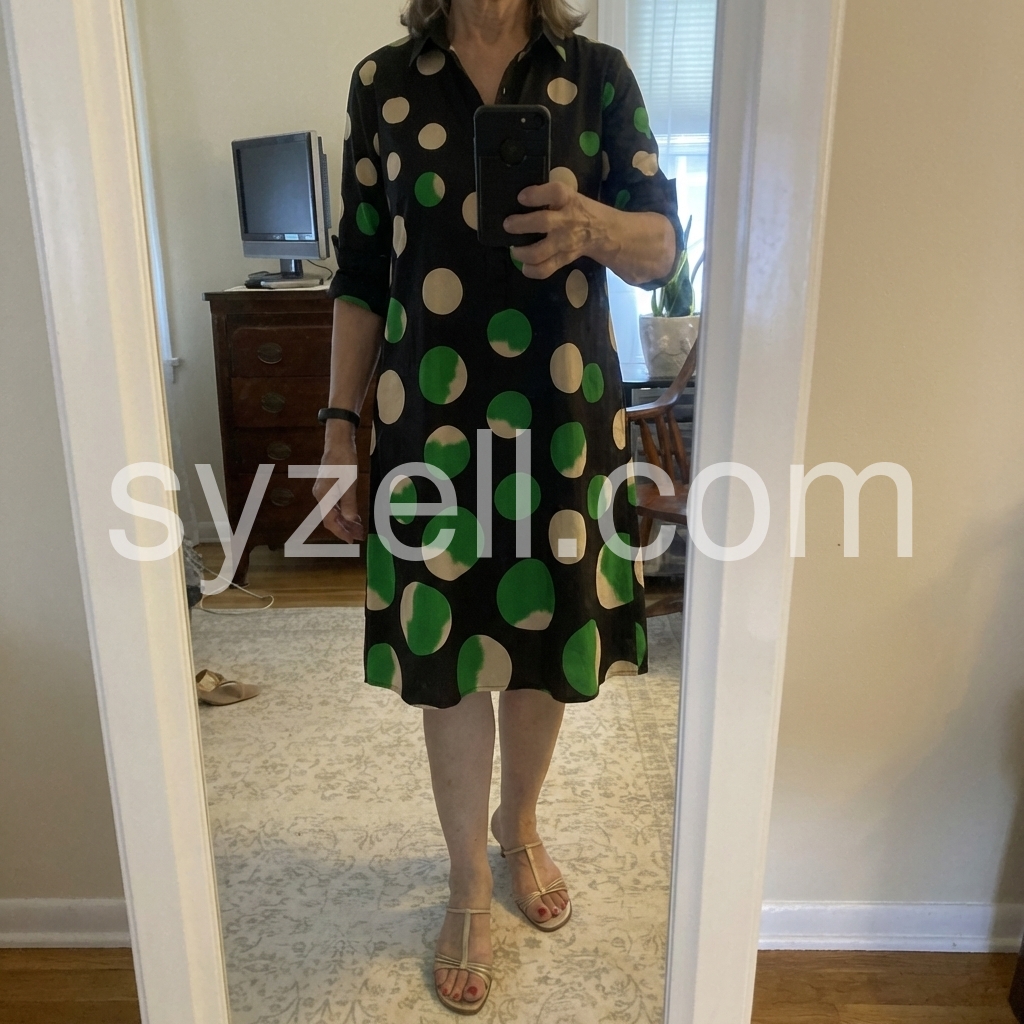 Elevate your casual style with this chic polka dot midi dress. The classic shirt collar, 3/4 sleeves and pockets offer a timeless, polished look.