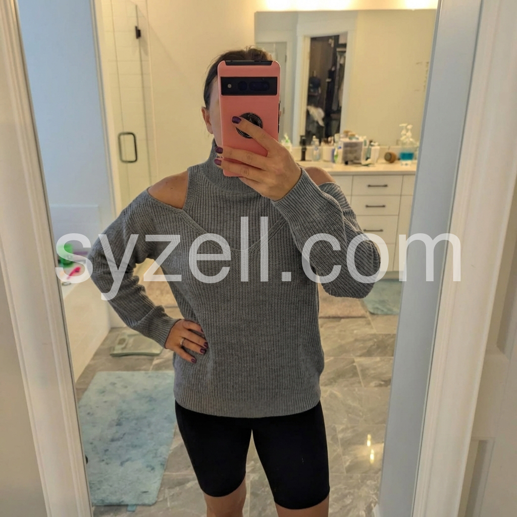 Elevate your wardrobe with this chic grey plain sweater featuring a sophisticated cold shoulder detail. Crafted for both comfort and style, its minimalist design pairs effortlessly with various outfits, while the cold shoulder cutouts add a modern, fashion-forward edge. Perfect for layering or wearing alone, this sweater blends timeless simplicity with contemporary flair.