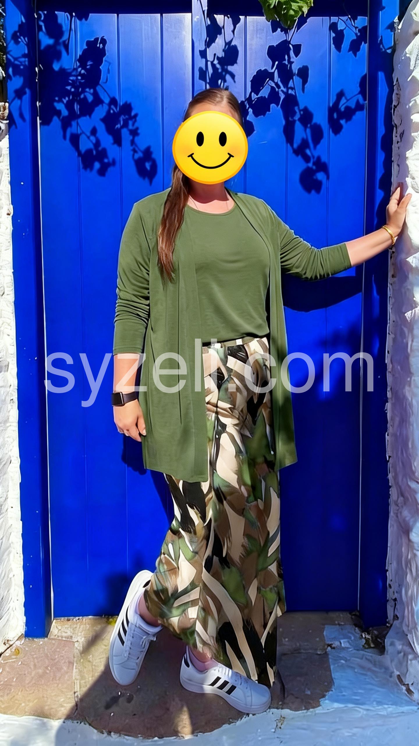 Perfect for spring and early fall! The earth-tone print on the pants is vibrant and matches the sage green top perfectly. It feels like wearing pajamas but looks chic.